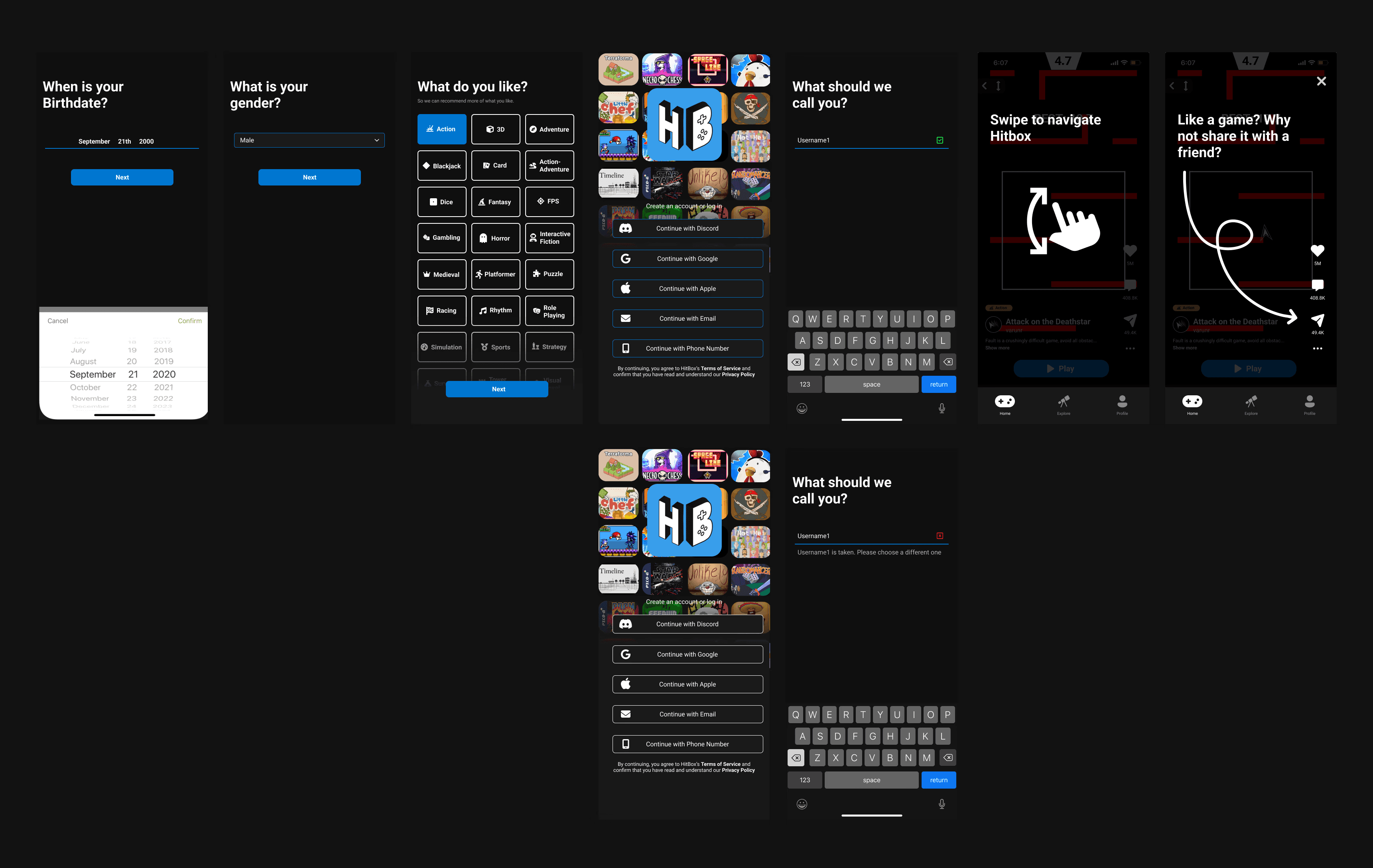 The HitBox team already had an app design, but they wanted to make it better. We began by reviewing their current design and logo.
