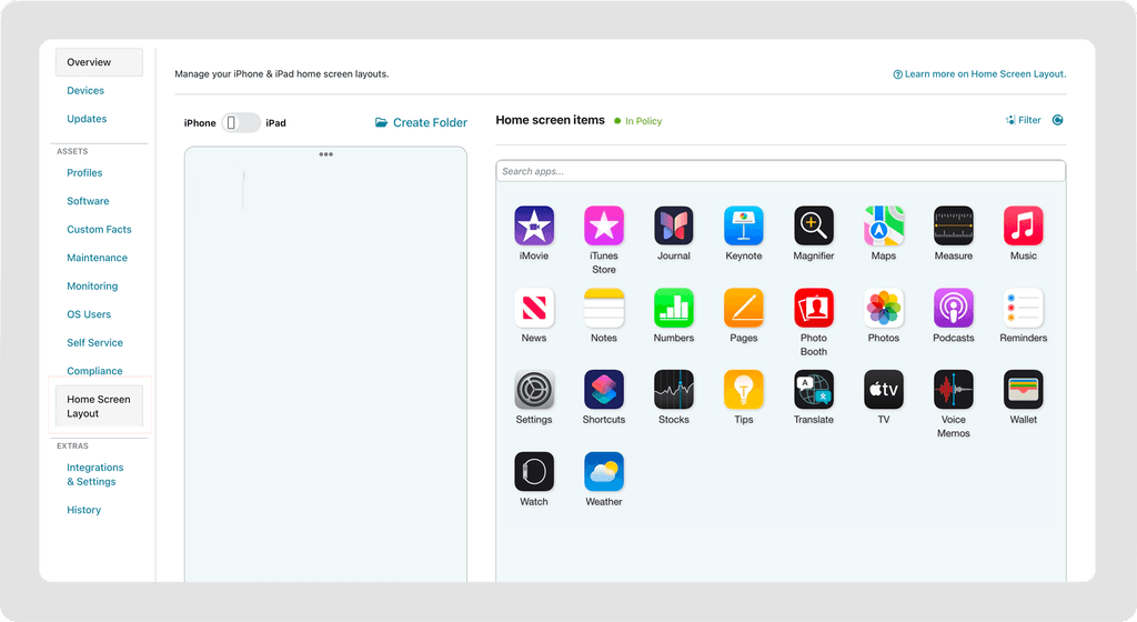 Without an MDM, manually arranging the Home Screen on each device could take several minutes per device