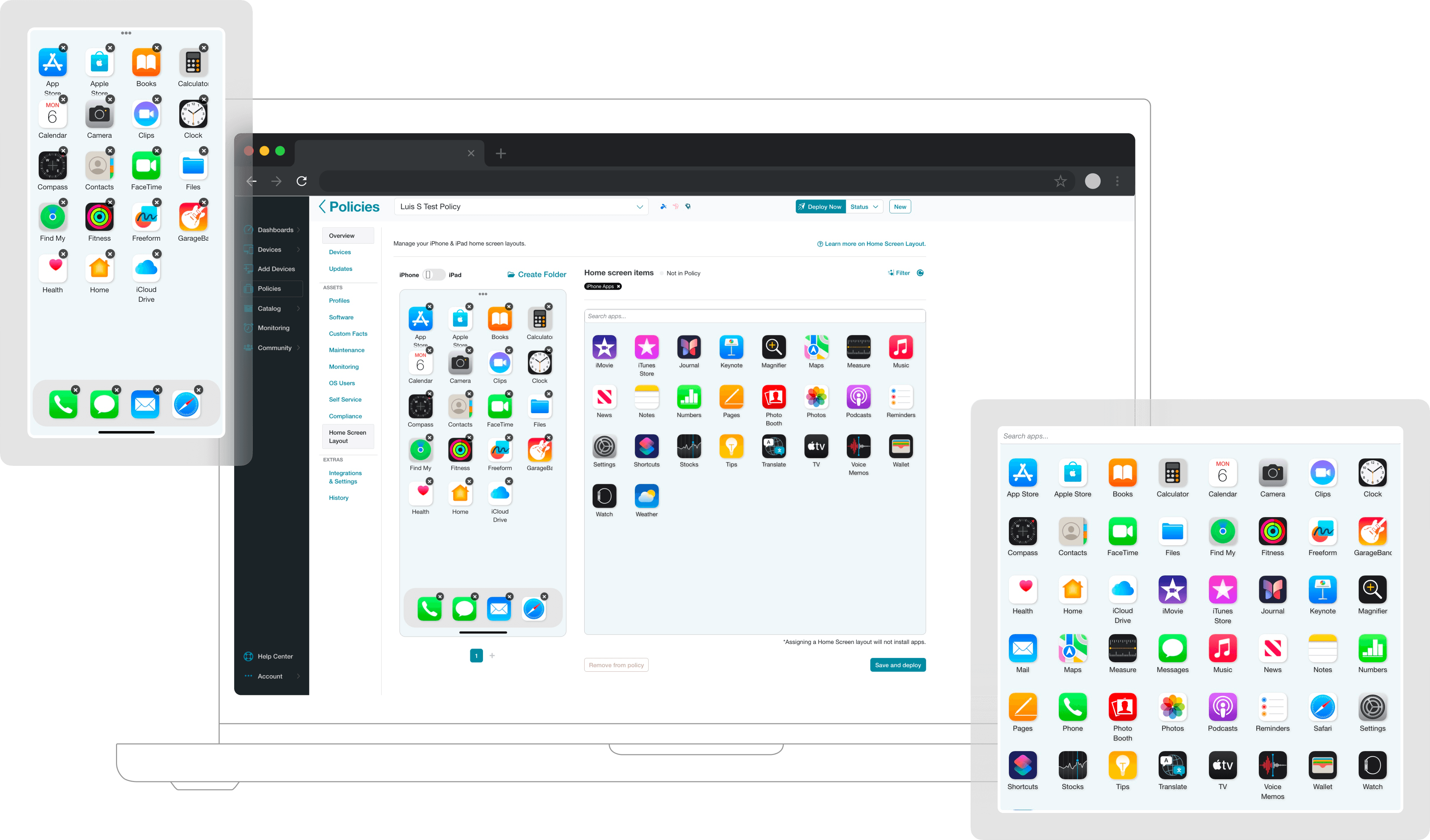 See apps exactly as they’ll appear on user devices. Admins can remove apps and customize their dock, which updates based on the device they’re using.